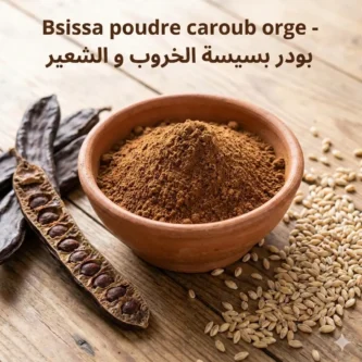 Poudre Bsissa Caroube et Orge Tunisie Savory Une bsissa d’orge traditionnelle, finement moulue et riche en saveurs. Naturelle et nourrissante,