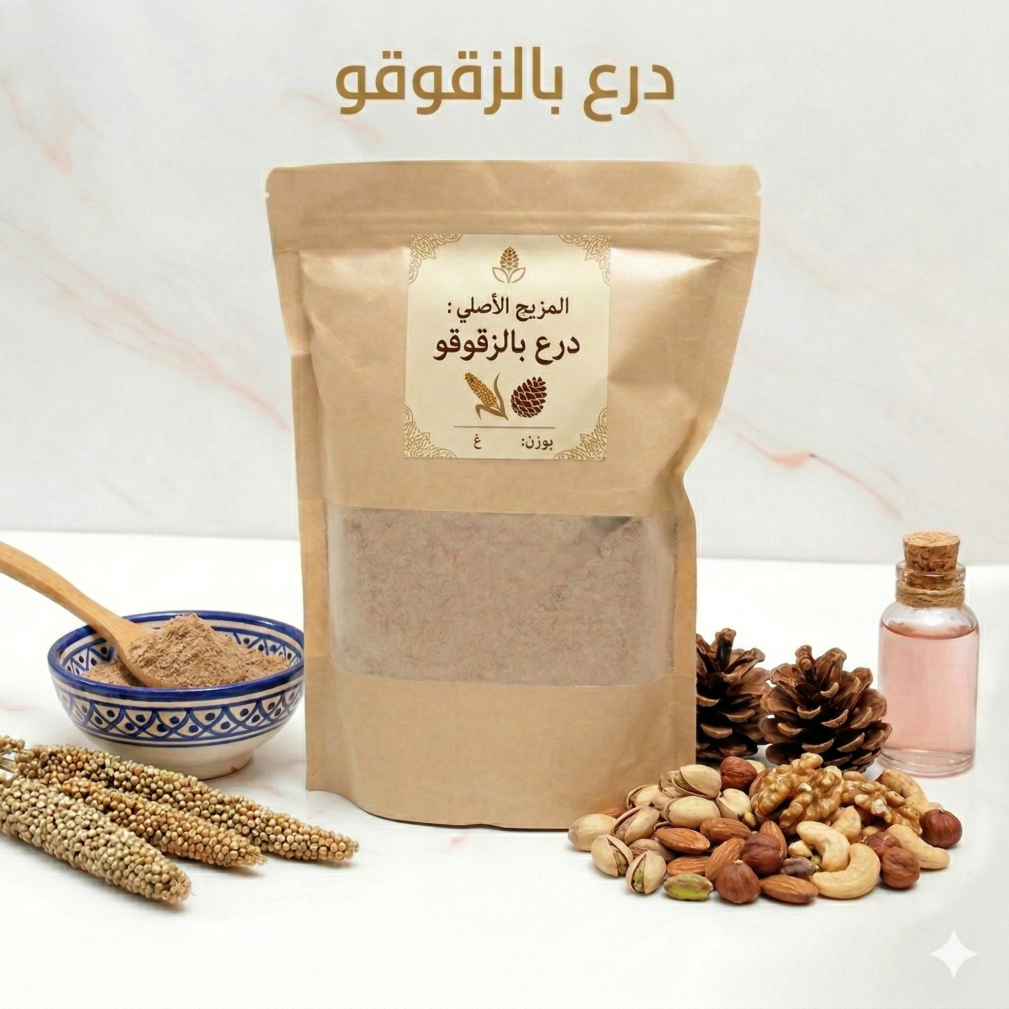 Le Droo au Zgougou n’est pas qu’une simple crème, c’est une véritable institution culinaire, un héritage transmis de génération en génération. Ce mélange unique marie la douceur ancestrale du sorgho (Droo) à la finesse aromatique des graines de pin d’Alep (Zgougou). C’est le mariage parfait entre la terre et la forêt, offrant une expérience gustative d’une profondeur inégalée.